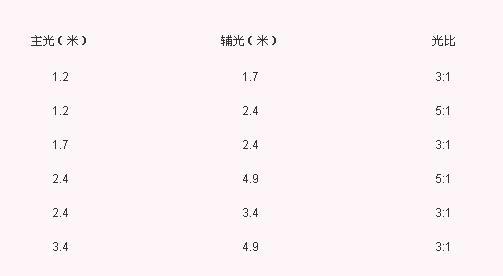 假设两个灯光的大小、形状、强度相等,那么,调整灯具与被摄物的距离,就能产生不同的光比。